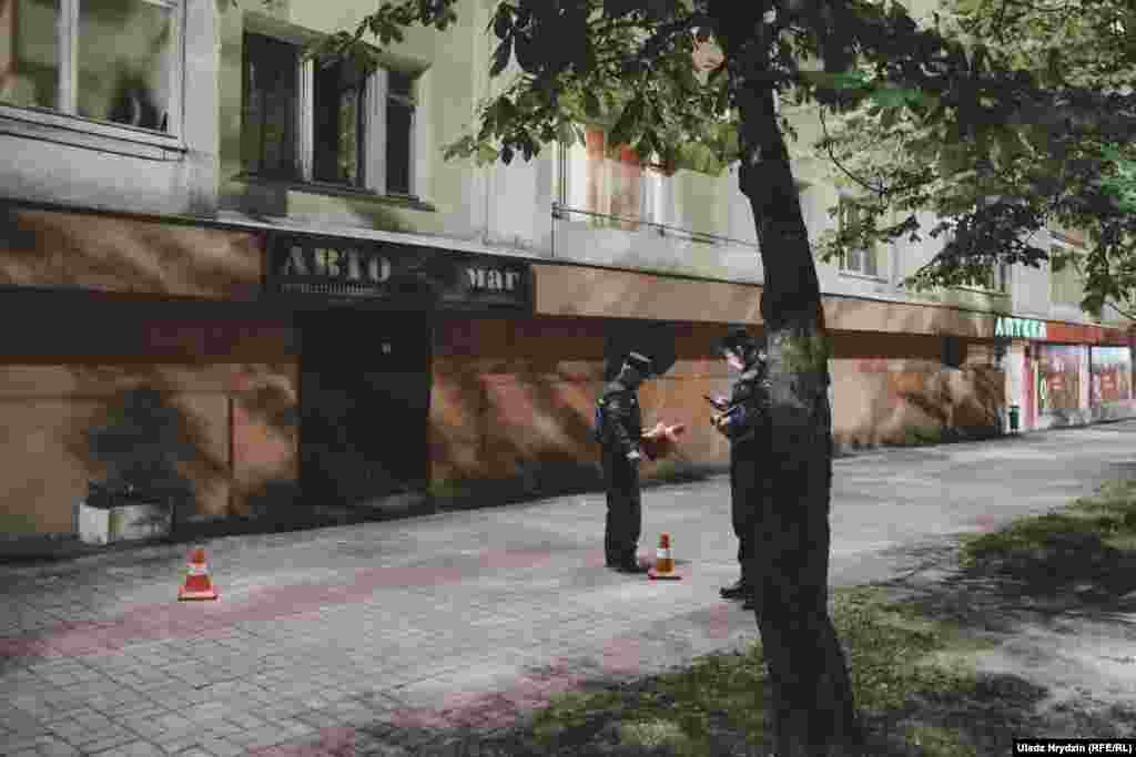 Аскепак і кроў на набярэжнай Сьвічлачы побач са спарткомплексам «Дынама», дзе ад раненьне падчас салюту загінула жанчына