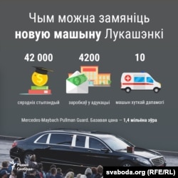 42 000 стыпэндый, 10 машын хуткай. Чым можна замяніць новы лімузін Лукашэнкі