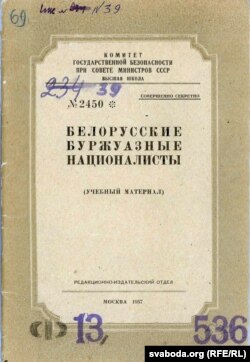 Мэтадычны дапаможнік «Беларускія буржуазныя нацыяналісты» быў выдадзены ў друкарні Вышэйшай школы КДБ пры Савеце Міністраў СССР у 1957 годзе пад рэдакцыяй палкоўніка Мікалая Куляшова пад грыфам «Зусім сакрэтна».