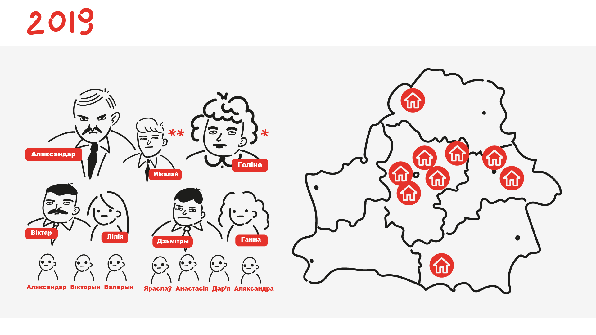 У 2004 годзе ў Аляксандра Лукашэнкі нарадзіўся трэці сын і ён стаў шматдзетным татам. Дзедам ён стаў яшчэ раней — у 1998 годзе. Агулам у яго цяпер сямёра ўнукаў. Галіна Лукашэнка фармальна застаецца жонкай кіраўніка дзяржавы, але жыве яна ня ў Менску, а ў Шклоўскім раёне. З улікам нявестак сям’я Лукашэнак за 25 гадоў павялічылася на 10 чалавек — іх цяпер 14.
