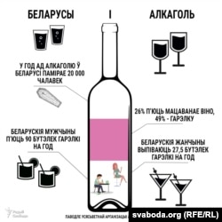 Паводле ацэнак Усясьветнай арганізацыі аховы здароўя, штогод у Беларусі ад алькаголю памірае каля 20 тысячаў чалавек, або каля 50 чалавек на дзень.