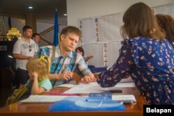 На выбарчым участку ў Менску працуе назіральніца ад Сусьветнага кангрэсу ўкраінцаў Сьвятлана Каваленка.