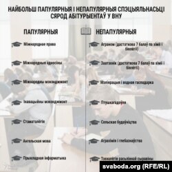 Выпускнікі мараць стаць дыпляматамі, праграмістамі, стаматолягамі, перакладчыкамі, і зусім мала хто ў будучыні хоча працаваць на зямлі — інжынэрамі-мэліяратарамі, заатэхнікамі, аграномамі.