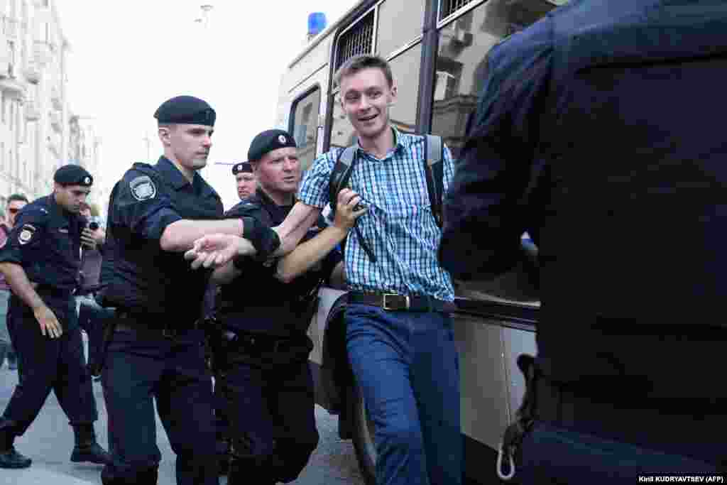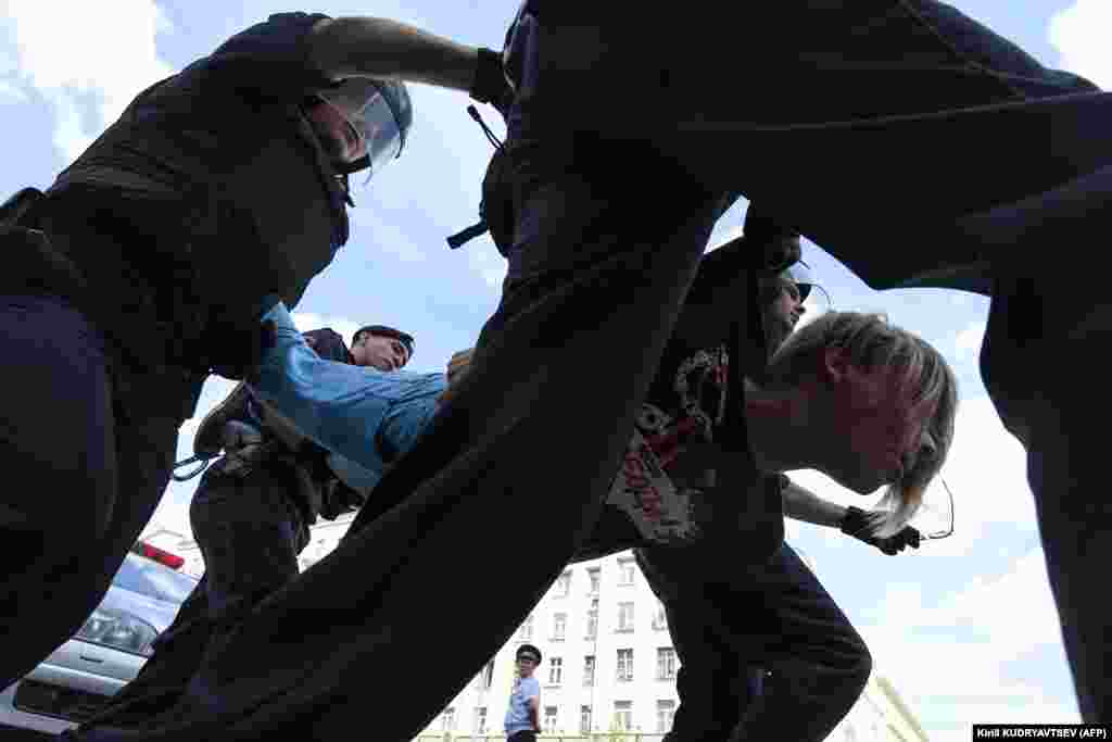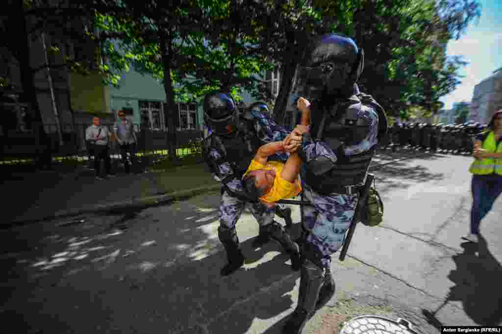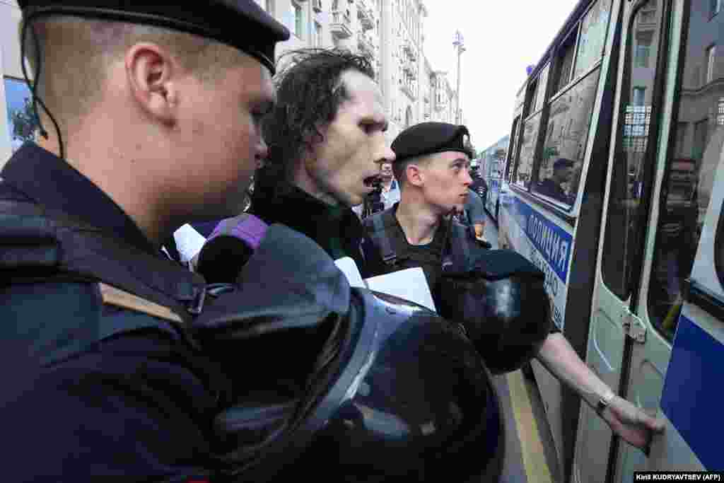 Брутальныя затрыманьні на акцыі пратэсту ў Маскве. Фотагалерэя