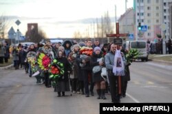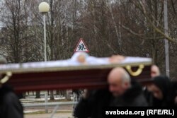 — Божа, хаця каб з труною тут нармальна прайшлі, — кажа адна з жанчын з кветкамі ў руках.