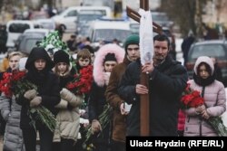 — Ён цікавіўся грамадзкім жыцьцём, пачаў весьці суполкі ў сацсетках па-беларуску, у тым ліку ад Стаўпецкага ТБМ. Харошы быў хлопец, неканфліктны. У панядзелак, калі ўсё гэта здарылася, спачатку гаварылі, што ахвяра з 10 клясы. Я пазваніў да Сашы, каб запытацца, як там і што. Але падняў ягоны бацька і сказаў: «Сашы з намі больш няма», — кажа актывіст Таварыства беларускай мовы Міхаіл Мацкевіч, які прынёс вянок.