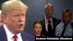 Прэзыдэнт ЗША Дональд Трамп, які прысутнічаў у залі падчас прамовы Тунбэрг, саркастычна адгукнуўся ў твітэры на яе прамову.