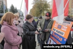 Удзельнікі акцыі адказалі, што гэта пікет па зборы подпісаў за кандыдата ў дэпутаты, і што яны знаходзяцца ў больш як 50 мэтрах ад суду.