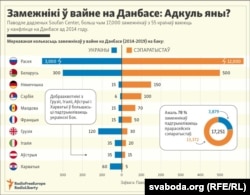 Дасьледчая арганізацыя The Soufan Center апублікавала дадзеныя пра замежнікаў, якія ўзялі ўдзел у збройным канфлікце на ўсходзе Ўкраіны. На чэрвень 2019 году статыстыка выглядае наступным чынам: