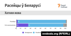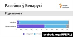 Нарэшце, падобная сытуацыя і з мовай хатняга ўжытку — амаль для усіх расейцаў Беларусі гэта расейская.