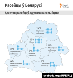 У адрозьненьне ад палякаў Беларусі, якія жывуць пераважна ў Горадзенскай вобласьці, расейцы даволі раўнамерна разьмеркаваныя па краіне. Іх доля крыху большая ў сталіцы і ў Віцебскай вобласьці, але ненашмат. Для параўнаньня — ва Ўкраіне паводле перапісу 2001 году доля расейскага насельніцтва складала на ўсёй краіне 17%, у Данбасе 38%, у Крыме — 58%. У Беларусі і доля расейцаў меншая, і яны разьмеркаваныя значна больш раўнамерна, чым ва Ўкраіне.