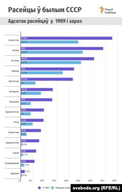 Табліца паказвае, як мянялася доля расейцаў у насельніцтве Беларусі