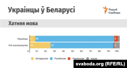 Сярод украінцаў украінамоўных у побыце аказалася прыкладна ў 7 разоў менш, чым тых, хто назваў украінскую роднай. Пераважнай доляй, прычым значна большай, чым у сярэднім па краіне, украінцы Беларусі назвалі расейскую сваёй мовай хатняй камунікацыі.