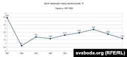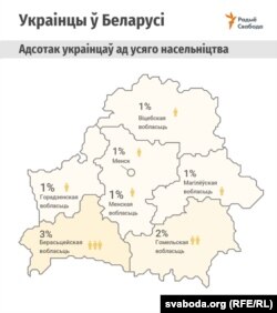 На графіку, які прыводзіцца ніжэй, паводле зьвестак перапісаў падаецца дынаміка долі ўкраінцаў у складзе насельніцтва БССР і Рэспублікі Беларусь, а таксама Менскай, Магілёўскай, Віцебскай, Віленскай, Горадзенскай губэрняў Расейскай імпэрыі (1897).