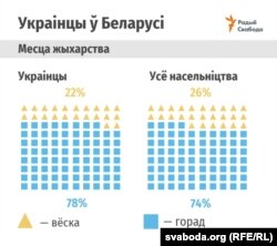 Сярод украінцаў, як і сярод расейцаў, доля гарадзкога насельніцтва перавышала сярэдні адсотак гараджанаў у Беларусі — 74%. Ва ўкраінцаў гэтае перавышэньне было меншым — 78%, чым у расейцаў — 85%.