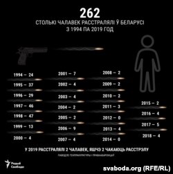 За 25 гадоў было толькі 2 гады, калі сьмяротны прысуд у Беларусі не выконваўся. Да Дня супраць сьмяротнага пакараньня Свабода сабрала ўсе прысуды ў адной інфаграфіцы.