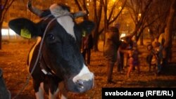Юры Ганцэвіч балятуецца па Юбілейнай акрузе № 31. Яго пікет з «музыкай» з прычэпу, каровай і казой выклікаў жывую цікаўнасьць у гараджан.