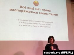 «Было так добра, пакуль не прыйшлі фэміністкі» — так называецца лекцыя, у якой Заліна акрэсьліла стэрэатыпы і памылкі, зь якімі штодня сутыкаюцца сучасныя фэміністкі.
