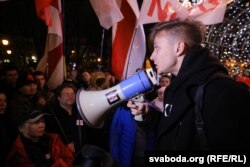 18.24 Выступіў малады хлопец, які сказаў, што ён баіцца і хвалюецца, але вырашыў прыйсьці, бо патрэбныя перамены.