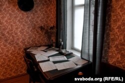 «Дык закрыты ж музэй, там няма нікога, — кажа суворы ахоўнік. — Але можам пазваніць дырэктарцы, калі вы з самай Беларусі прыехалі. Там проста ня паляць. Ім холадна сядзець, то калі няма наведнікаў, яны ў школах ці яшчэ дзе. Але вось нумар ёсьць, зараз пазвонім».