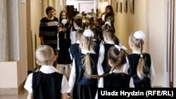 Дырэктарка расказвае, што гімназія — у старым раёне, дзе ня так шмат дзяцей. Але сюды зьбіраюцца з усяго гораду. Сёлета ў тры першыя клясы сабралі 60 дзетак.