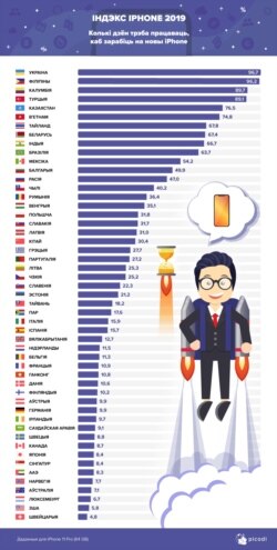 Беларусь апынулася ў «хвасьце» Індэксу айфону