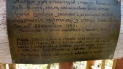 Надпіс на вялікім драўляным крыжы зроблены па-беларуску і па-польску. Ён сьведчыць, што на гэтым месцы, паміж Азёрамі і Берштамі на Горадзеншчыне, 22 красавіка 1863 году адбыўся бой паміж паўстанцамі і царскімі войскамі. Мясьціны тут былі непраходныя.