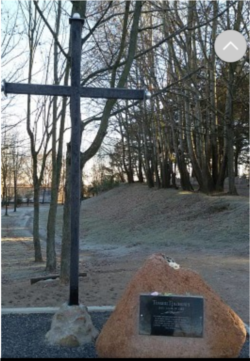 Побач зь вёскай Слабодка Астравецкага раёну на высокім пагорку ў 2013 годзе паставілі крыж з шэрага каменю ў выглядзе гіганцкага мяча, загнанага вастрыём у зямлю.