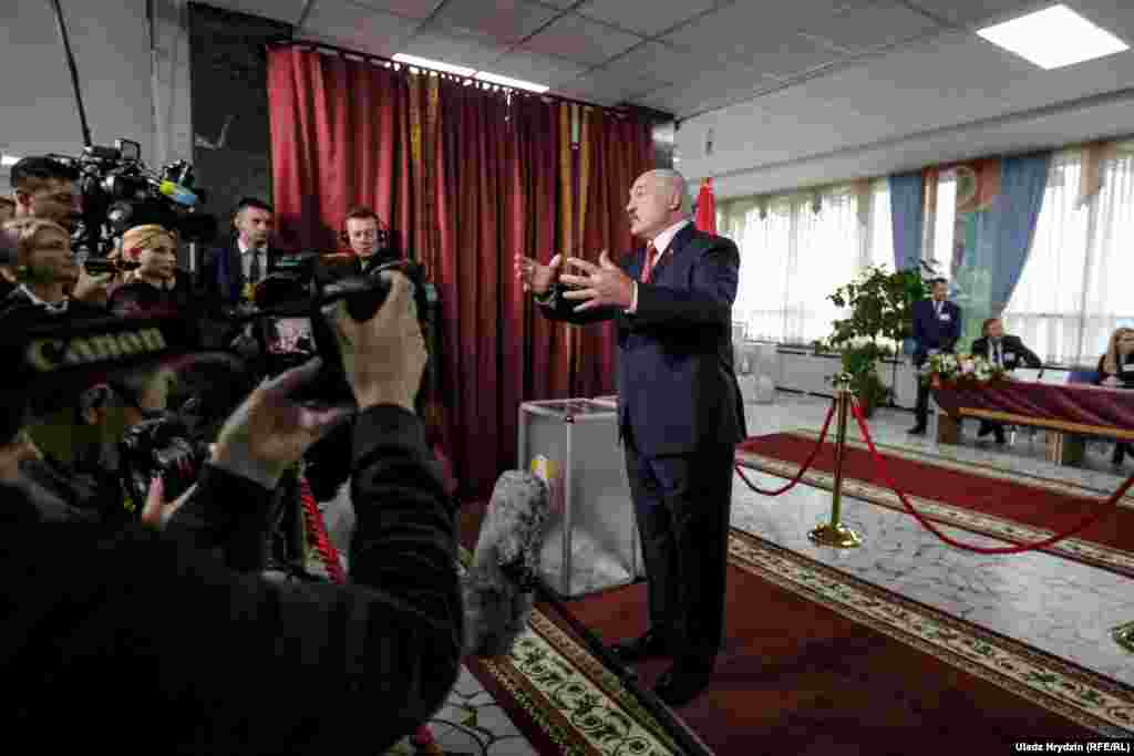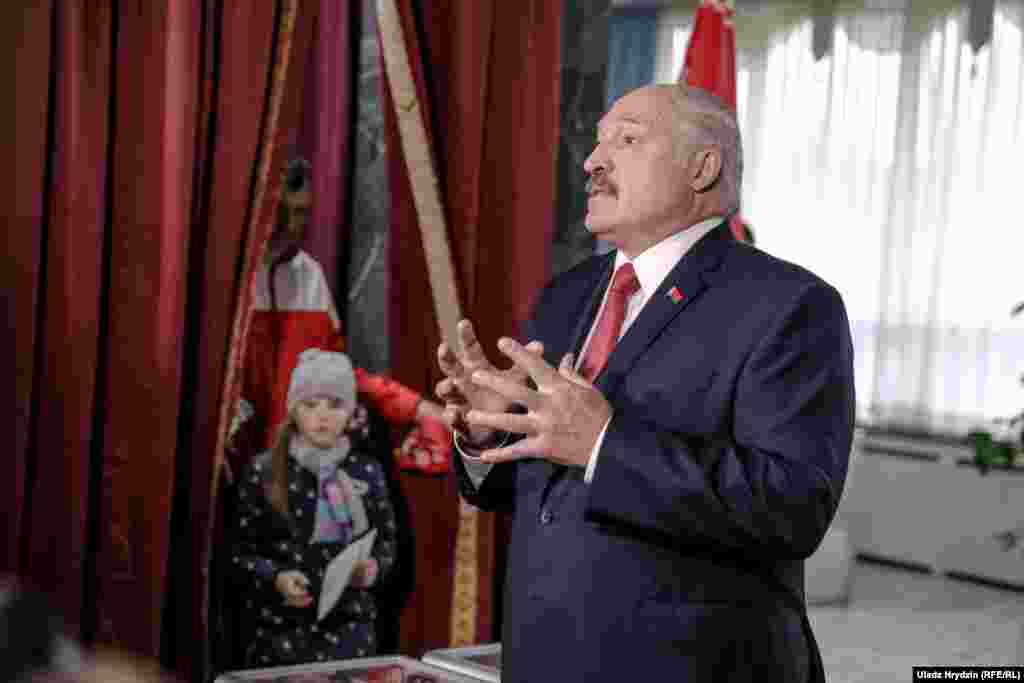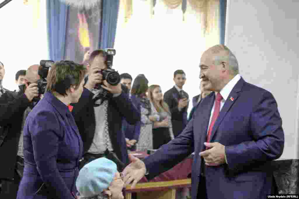 На ўчастак ён прыехаў прыкладна ў 11:20, гэтым разам адзін, без малодшага сына Мікалая, павітаўся з участковай камісіяй, назваўшы іх «байцамі бачнага фронту». Яго сустракалі кіраўніца адміністрацыі Натальля Качанава і іншыя чыноўнікі.