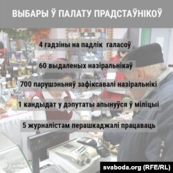 1 — столькі кандыдатаў у дэпутаты ў часе падліку галасоў апынуліся ў міліцыі. Пятра Маркелава, давераную асобу кандыдата Станіслава Шашка, вывелі з участку ў кайданках, бо той папрасіў пералічыць галасы. Разам зь ім у аддзел міліцыі трапіў і сам кандыдат. Бліжэй да ночы абодвух адпусьцілі, галасы не пералічвалі.