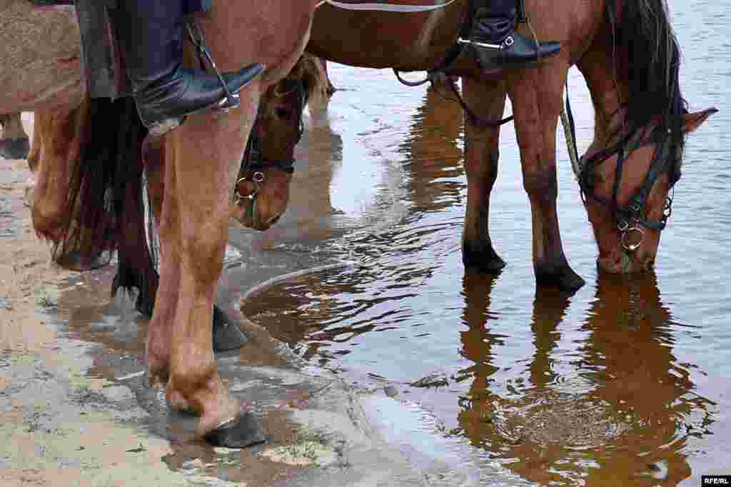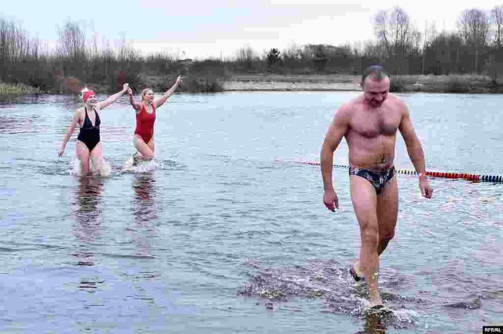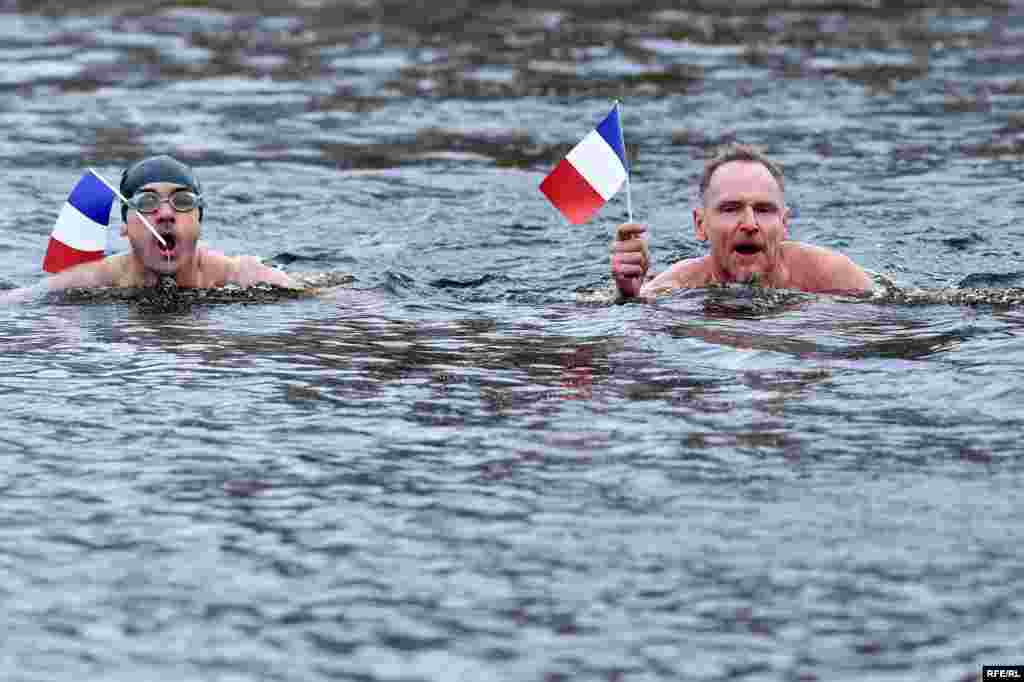Сёньня Амбасада Францыі ў Беларусі правяла штогадовыя мерапрыемствы з нагоды гадавіны пераправы Напалеона ў лістападзе 1812 году праз раку Бярэзіна. 85 чалавек удзельнічала ў заплыве праз раку. Фота Сяргея Гапона.