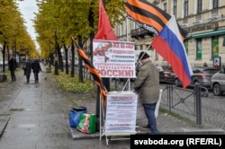 Увечары апошняга дня расейскага падарожжа ля самай папулярнай пышачнай на Неўскім праспэкце бачу самотнага апазыцыянэра. Ён стаіць у адзіночным пікеце, абвешаны георгіеўскімі стужкамі і імпэрскімі сьцягамі, і зьбірае подпісы за выратаваньне Расеі.