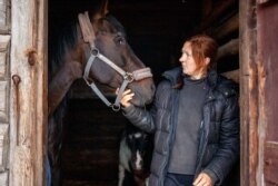 «Стайняў там вельмі шмат. Я пачала займацца. Рыхтавала коней да спаборніцтваў. Сяброўка пераканала, што мне патрэбны свой конь. Я доўга ўпарцілася. І вось ён — конь-агонь, — блізка падысьці да Юпітэра можа толькі гаспадыня. — Гэта жарабец. Латвійскі цеплакроўны. Былі амбіцыі. Думала, у спорце нешта зможам. Але Юпітэр няўдала зламаў нагу. Конь можа скакаць, але калі яго сурʼёзна ўводзіць у працу, ён будзе пэрыядычна кульгаць».