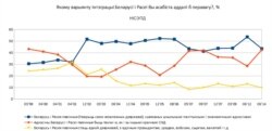 Разьмеркаваньне адказаў у апытаньнях апошніх гадоў прыводзіцца ў наступным графіку.