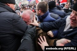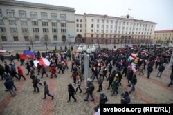 12.25 Пратэстоўцы прымусілі людзей у цывільным бегаць па Кастрчычніцкай плошчы з аднаго канца ў іншы. Паглядзіце на відэа: