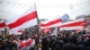 12:20 Ужо некалькі соцень людзей сабраліся на Кастрычніцкай плошчы ў Менску. Шмат бел-чырвона-белых сьцягоў. Цяпер натоўп рухаецца да Палацу прафсаюзаў тут жа на плошчы.