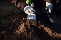 «Дзьве магілы мы выкапалі на мінулым тыдні, а два шкілеты ў гэты прыезд, — тлумачыць Свабодзе адмысловец. — Агулам у гэтым месцы было пяць пахаваньняў; на жаль, адно цалкам зьнішчыла будаўнічая тэхніка, толькі шматкі засталіся. Акрамя таго, парэшткі яшчэ 4-5 чалавек знайшлі ў экскаватарных адвалах — гэта калі меркаваць па вялікіх галёначных костках».