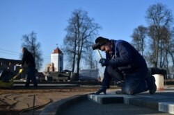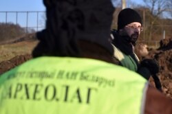 Побач увіхаецца з рыдлёўкамі і пэндзлямі невялікая брыгада пад кіраўніцтвам навуковага супрацоўніка аддзелу захаваньня і выкарыстаньня археалягічнай спадчыны Інстытуту гісторыі Акадэміі навук Паўла Кенькі.