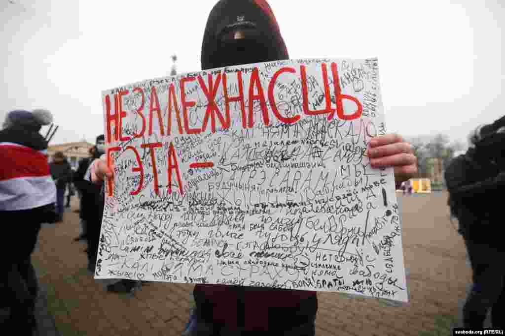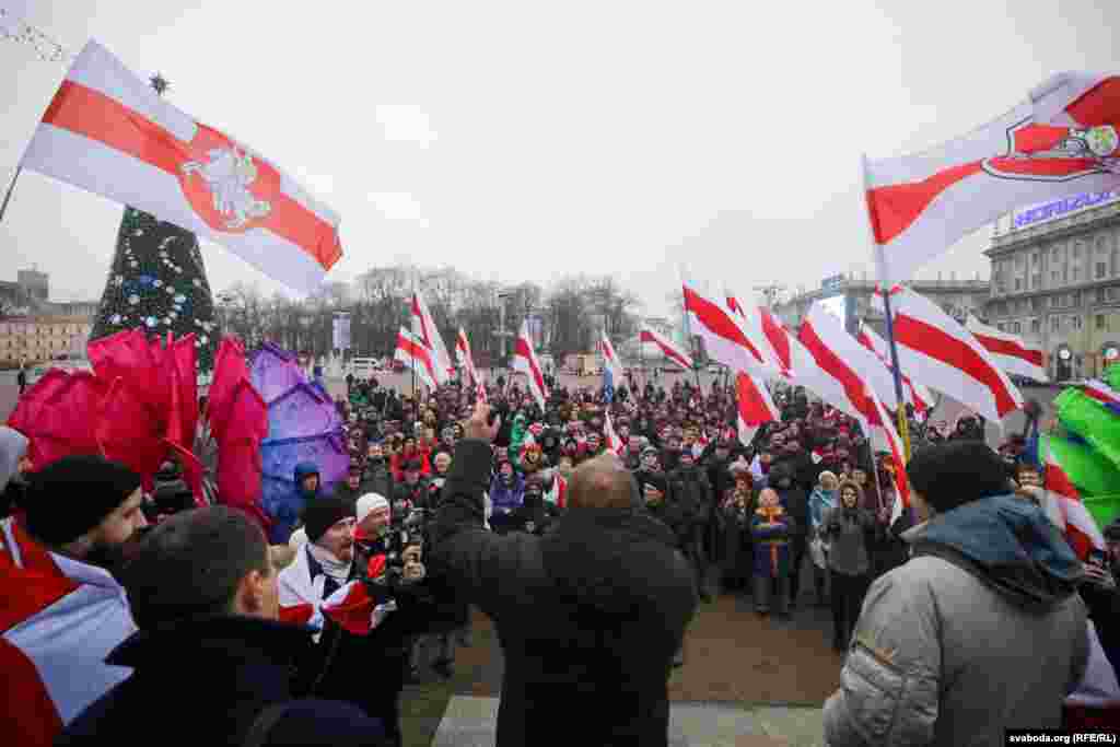 Удзельнікі несанкцыянаванай акцыі пратэсту супраць інтэграцыі з Расеяй, якая прайшла 21 сьнежня на Кастрычніцкай плошчы Менску, прынялі рэзалюцыю «Народная мабілізацыя ў абарону незалежнасьці Беларусі».