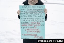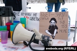 На пікеце зьбіралі подпісы пад пэтыцыяй за прыняцьце закону супраць хатняга гвалту. Пэтыцыю і калектыўны зварот накіруюць ва ўсе датычныя да гэтай тэмы дзяржаўныя органы ў лютым.