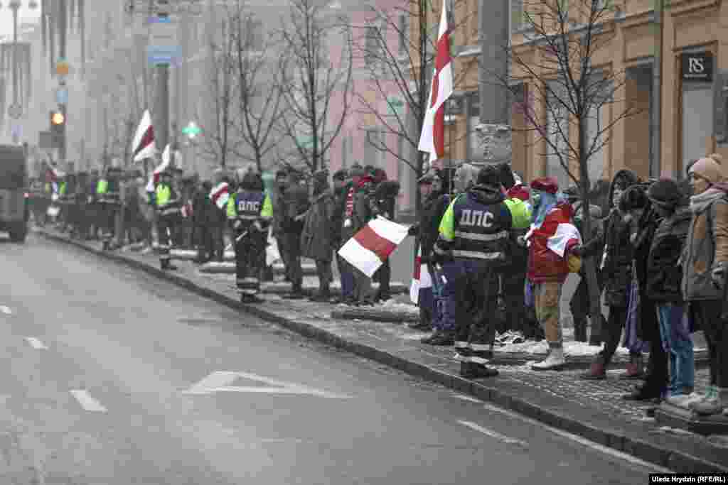 Акцыю меркавалі «расьцягнуць» ад Галоўпаштамта да Кастрычніцкай плошчы, але ўдзельнікаў хапіла на два кварталы