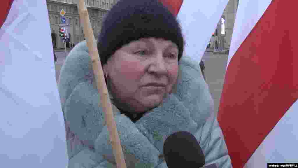 Актывісты пачалі зьбірацца на Кастрычніцкай плошчы каля 12.00. На фота — Ніна Багінская