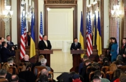 Як паведаміў пасьля сустрэчы з прэзыдэнтам Украіны Ўладзімірам Зяленскім дзяржаўны сакратар ЗША Майк Пампэо, у часе перамоваў таксама абмяркоўваліся стасункі Ўкраіны з Расеяй.