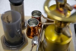 У суседнім памяшканьні за празрыстай сьцяной ляжаць мяхі як для бульбы, але з кававым зернем. Усяго каля тоны. Яны прыехалі сюды з Этыёпіі, Гватэмалы, Нікарагуа, Гандурасу, Сальвадору, Бразыліі, Індыі.