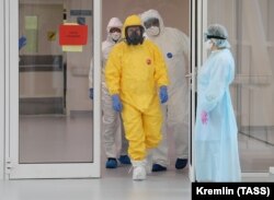 Кіраўнік Расеі Ўладзімір Пуцін наведаў 24 сакавіка ў маскоўскім пасёлку Камунарка лякарню, дзе трымаюць пацыентаў з падазрэньнем на новы каранавірус. Перад уваходам у адну з зонаў лякарні на яго апранулі касьцюм хімічнай абароны.