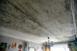 У дождж з даху вада трапляе ў дом і сьцякае на першы паверх. Залівае столь і сьцены. У сваёй кватэры жанчына робіць рамонт сама: пэнаплястам уцяпліла сьцены, падфарбавала столь.