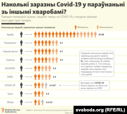 Наколькі каранавірус заразны ў параўнаньні зь іншымі хваробамі? Адной карцінкай