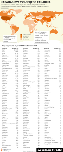 Параўнайце: дзьве мапы распаўсюджаньня COVID-19 з розьніцай у месяц
