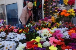 Усе, хто сьпяшаецца ў краму ці на працу, — у масках, некаторыя — у пальчатках.