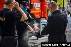 Капітан дзяржаўнай пажарнай службы Польшчы Якуб Січэк паведаміў, што ў Беларусь прывезьлі агулам каля 80 тысяч літраў дэзынфэкцыйных сродкаў, 100 тысяч масак і 1000 адзінак лекаў, зь іх 7,5 тысячы літраў дэзынфэкцыйных сродкаў і 25 тысяч масак разьмяркуюць паміж Горадняй і Воранавам. Рэшта паедзе ў Менск, а адтуль у іншыя гарады.